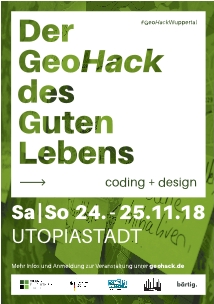 Du stehst hinter offenen Daten, begeisterst Dich für Karten, programmierst gerne an kniffeligen Lösungen oder visualisierst komplexe Dinge? Dann bist Du bei dem GeoHackdes Guten Lebens genau richtig. Wir laden alle Front- und Backend-DeveloperInnen, UX-/UI-DesignerInnen, Public Interest DesignerInnen, Data Scientists und Open Data EnthusiastInnen ein, am Wochenende vom 24. bis 25.11.18 in UTOPIASTADT mit uns zu hacken. Was ist unser Ziel? Wir wollen in einem offenen Portal ortsbezogene Daten aus Zivilgesellschaft, Politik, Wissenschaft und Verwaltung zusammenbringen und in Beziehung setzen! Womit arbeiten wir? Auf der Grundlage von OpenStreetMaps mit Java, Angular, Overpass API, OAuth, Shiro, Sketch, Zettel, Stift und einigen weiteren Tools. Du darfst natürlich nutzen, was Du willst. Die besten Teams werden mit einem Geldpreis ausgezeichnet. Für Verpflegung ist gesorgt.