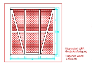 An der Aussenwand muss das Fachwerk über fast den ganzen unteren Bereich inklusive Fenster von E.06 und E.07 erneuert werden. Hier zu gibt es eine Planung von der Firma Benn sie sieht folgender Maßen aus:
